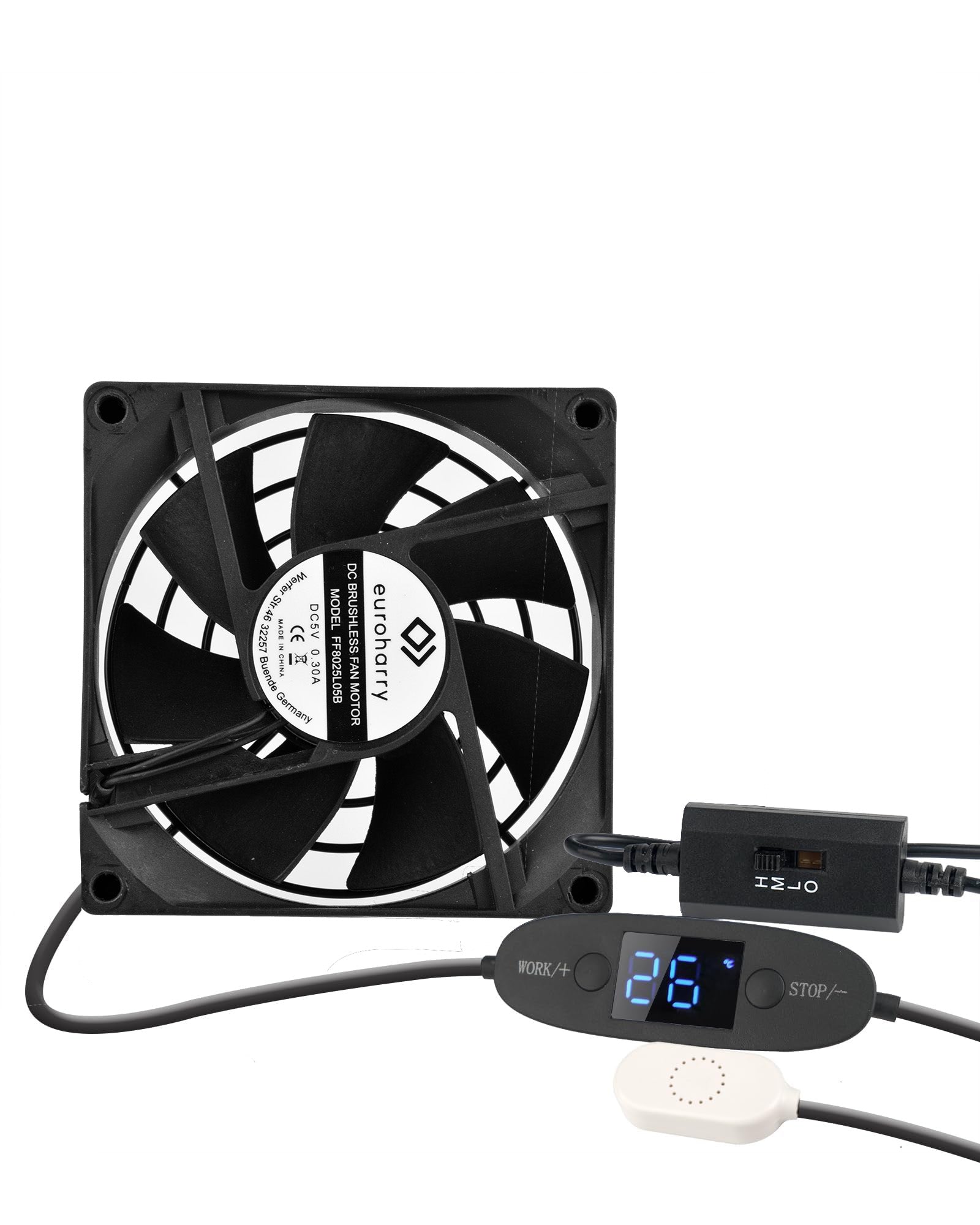 Euroharry USB 5V-Lüfter mit Digitalanzeige temperaturgesteuertes leises Lüftersystem, schwarzem für Heimkino-AV-Schränke