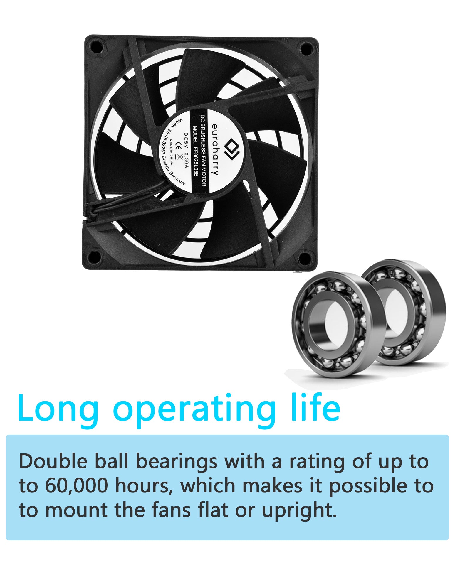 · Stabil: bieten einen hervorragenden Luftstrom (32.08 CFM), um einen effizienten Betrieb aufrechtzuerhalten und gleichzeitig einen minimalen Geräuschpegel (20.3 dBA) zu gewährleisten. Doppelkugellager werden verwendet, um einen stabilen Betrieb über einen langen Zeitraum zu gewährleisten.
