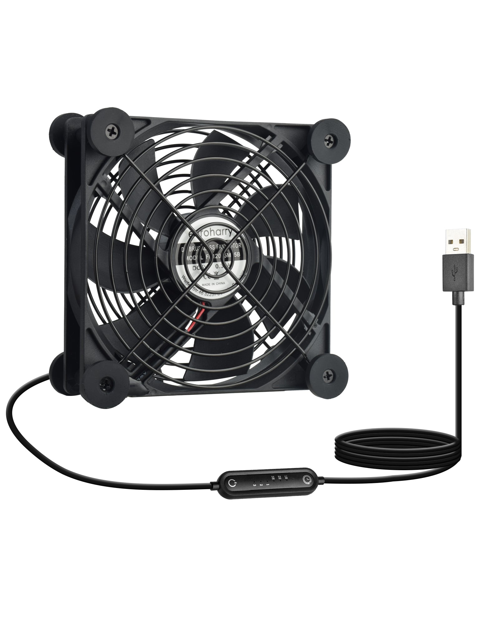Euroharry USB 120mm leiser Ventilator, 6-Windgeschwindigkeiten und Smart Timing Controller, Motor Moisture Resistant (IPX5) Staubdicht, Breitspannungs-kompatible 5-12V Geeignet für elektronische Geräte, Haustiernester, Pflanzenräume