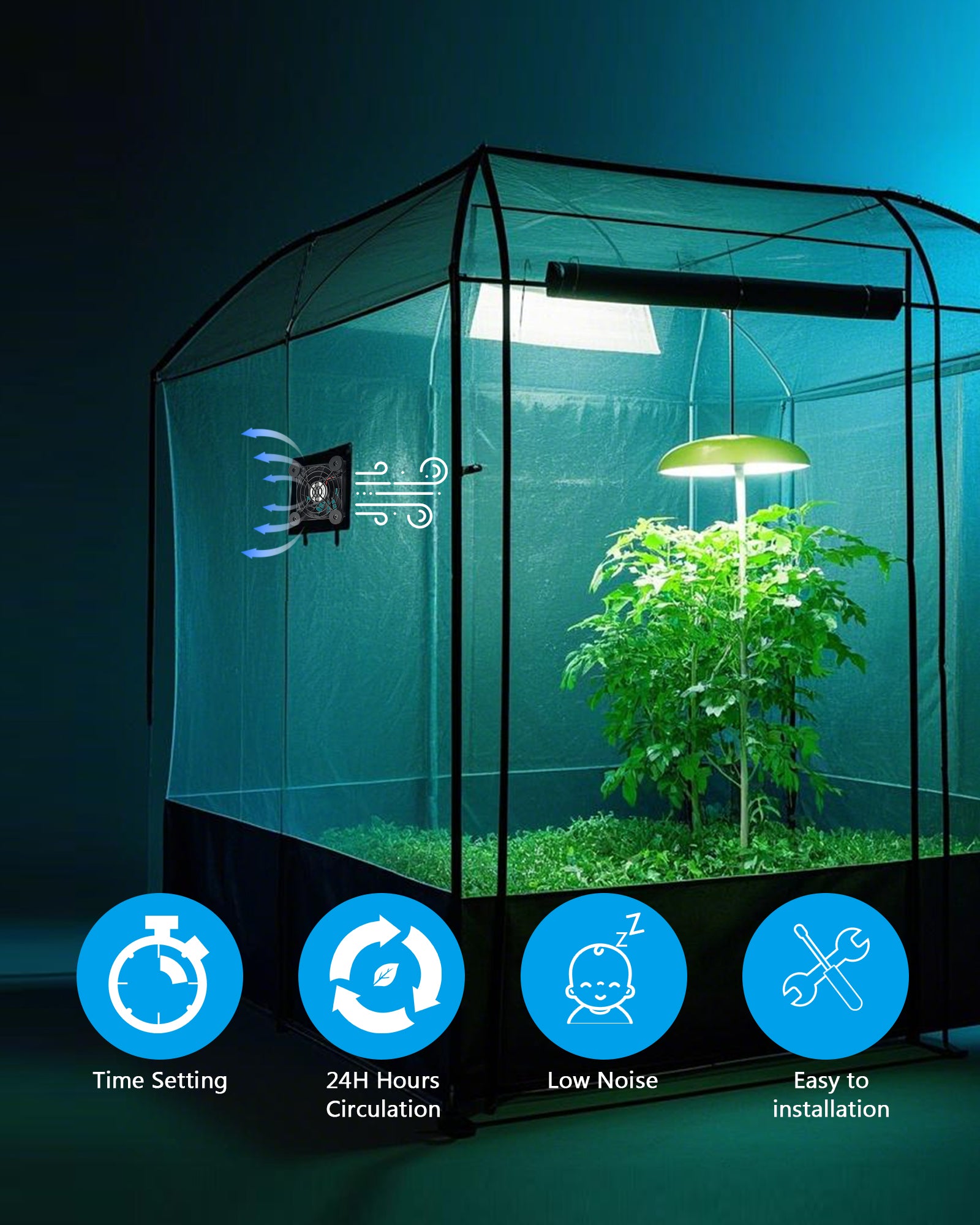 Intelligenter Timing-Controller: Es hat 6-verzögerte Abschaltzeiteinstellungen, die von 1 bis 6 Stunden frei gewählt werden können, und 3-Zyklus-Öffnungsmodi, einschließlich 12H-Zyklus, 24H-Zyklus und Nicht-Zyklus-Modus. Ob es sich um die Desodorierung und Auspuffung des Tierzwingers oder die Belüftung des Pflanzenraums handelt, es kann durch die Zeitverzögerungsfunktion genau gesteuert werden, wodurch Ihre Hände vollständig befreit und die Wartung einfach und bequem ist. (Speicherfunktion nach Stromausfall, Ausschalten und dann Ausschalten, um das Getriebe und den Zustand vor Stromausfall wiederherzustellen, einschließlich des Zeitzustandes wird auch vor Stromausfall wiederhergestellt)