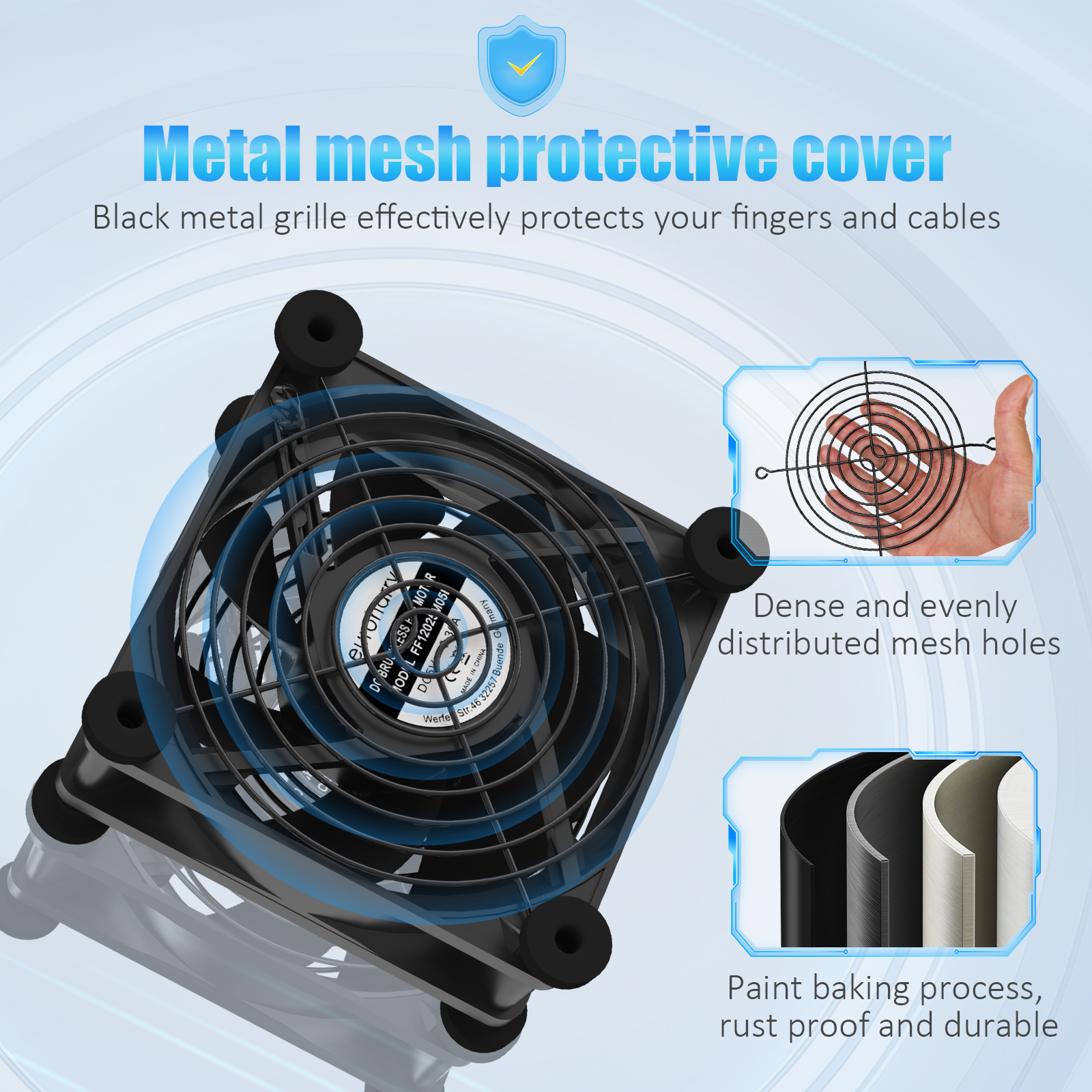 4.【Mehrfachschutz】Schwarzes Metallgitter auf beiden Seiten des Lüfters, um das Eindringen von Händen und Kabeln zu verhindern